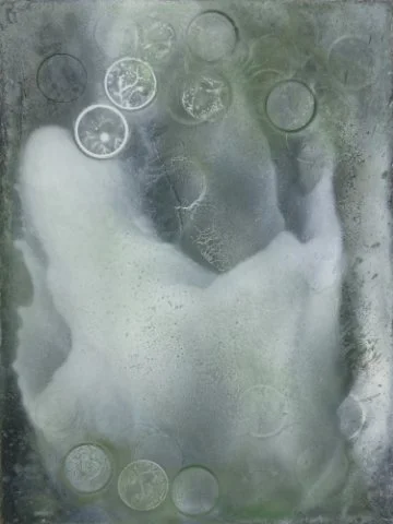 Blowing coins with a spray gun, no. 2